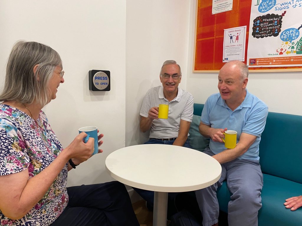 It’s 11:30 on a mild Wednesday morning and Richard* is tucking into a selection of Fox’s biscuits, whilst he passionately expresses his dismay with Crystal Palace FC’s latest performance. Richard’s mobile phone is balanced on his leg with expert precision, playing football highlights, as he dips in and out of conversation with his friends at the Carers Information Service’s (CIS) Carer’s Café. Whilst the football playback from Saturday’s match is forcing him to relive some personal pain, his commentary provides great entertainment to his friends.
